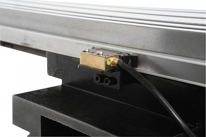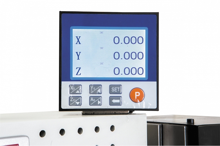 Показания перемещения по осям отображается на устройстве цифровой индикации, УЦИ, которая работает в паре с 3мя магнитными линейками, благодаря которым гарантированная точность позиционирования составляет +/-5 мкм.